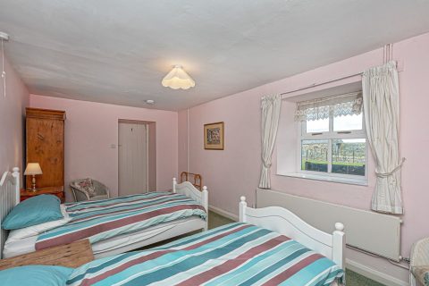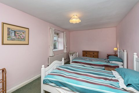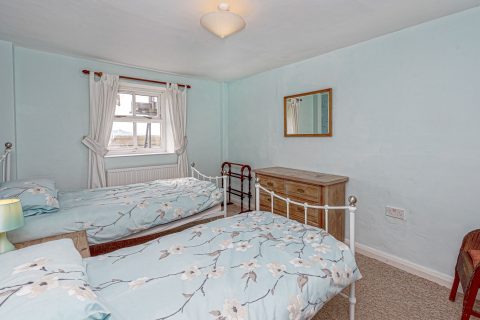 The cottage has three bedrooms sleeping six in all. There are two twin-bedded rooms, one at the front and one at the rear of the house. One is accessed from the sitting room and the other from the end of the entrance hall and is next to the bathroom. The third is a double-bedded room facing south with access from the sitting room.