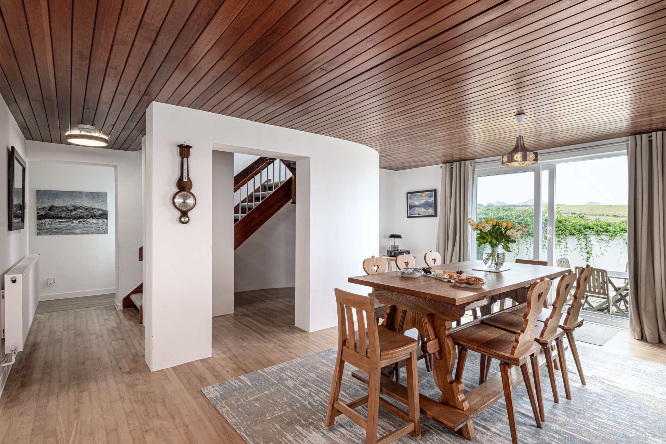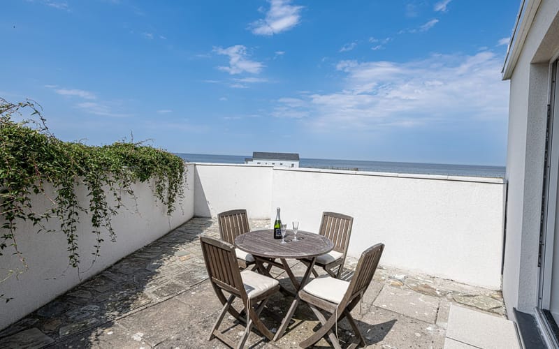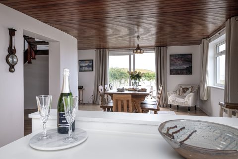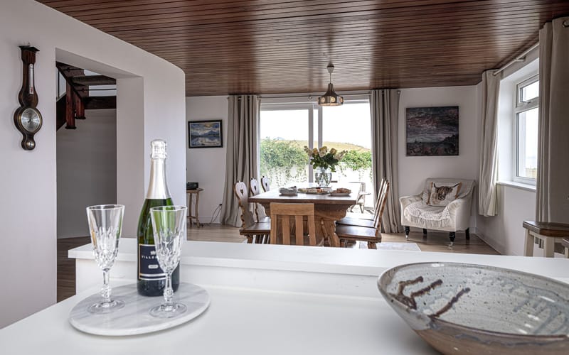 The house has amazing views of the sea or the mountains from every window. The enclosed garden is a good size and has three outdoor seating areas, one with a dining table and chairs that comfortably seats 8. There is also a spacious first floor balcony with panoramic views.