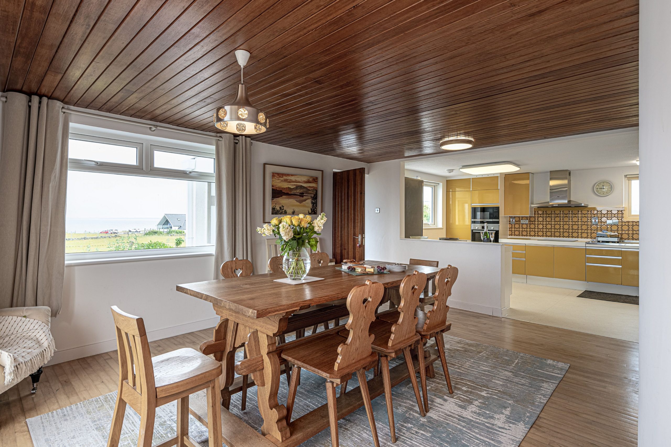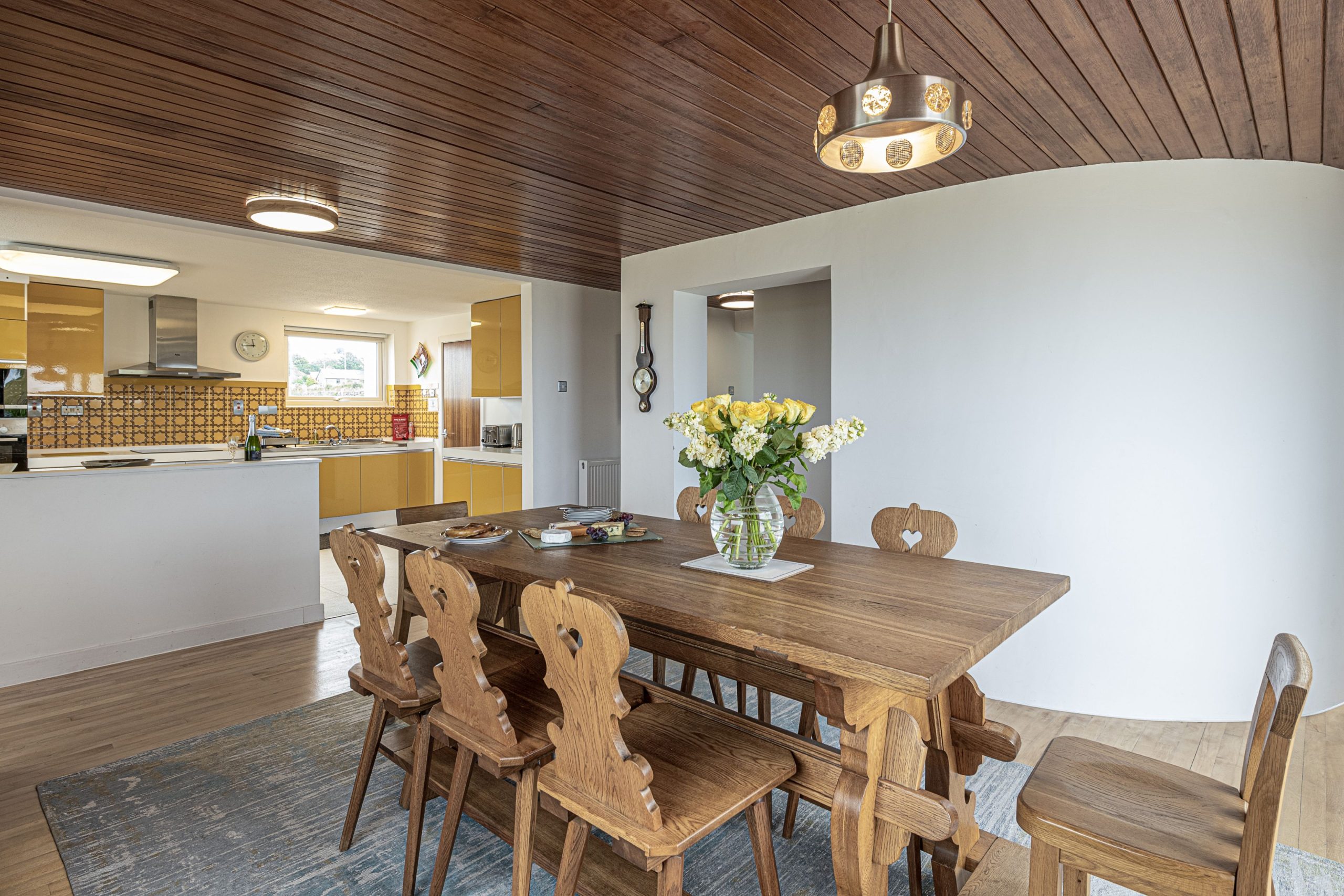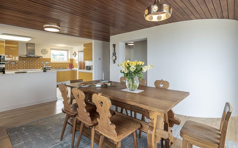 Open plan area with dining room, kitchen and inner hallway