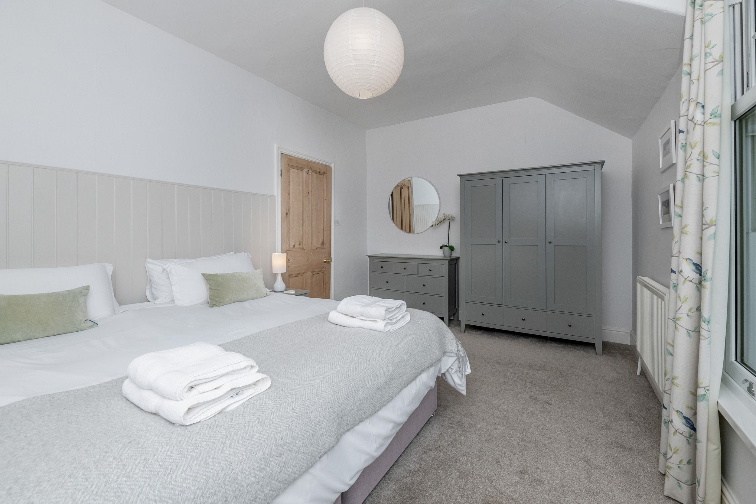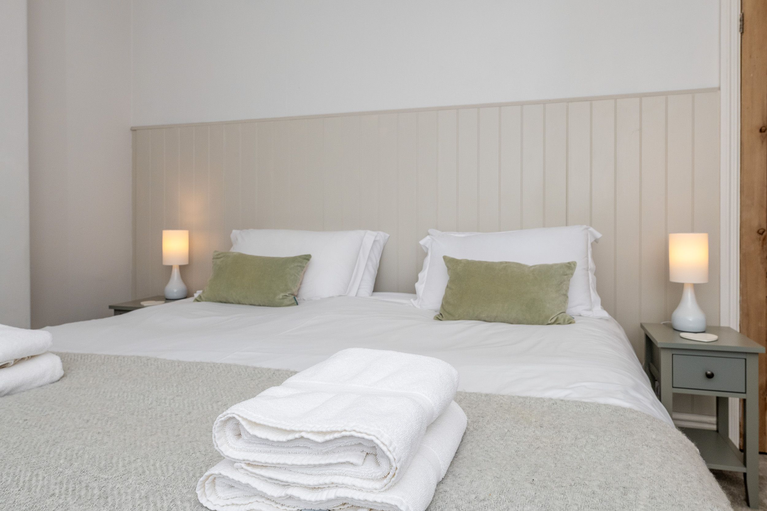 The cottage includes a drying room and tumble dryer, secure bike storage, and a convenient outdoor cleaning area. Bedrooms feature Sealy Posturepedic and Silentnight mattresses with a zip-link super king bed (convertible to twins) and a comfortable double room — all with luxury linen and towels provided.