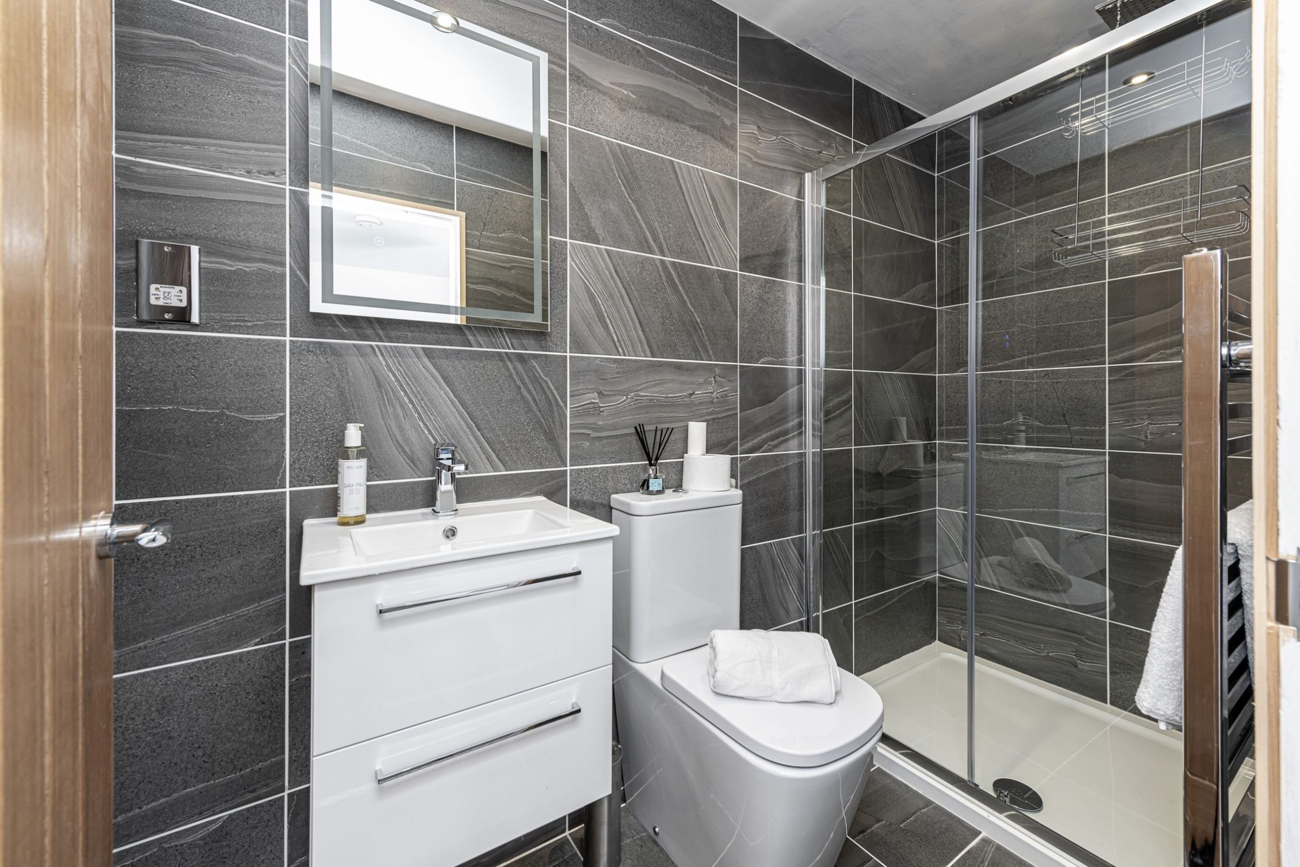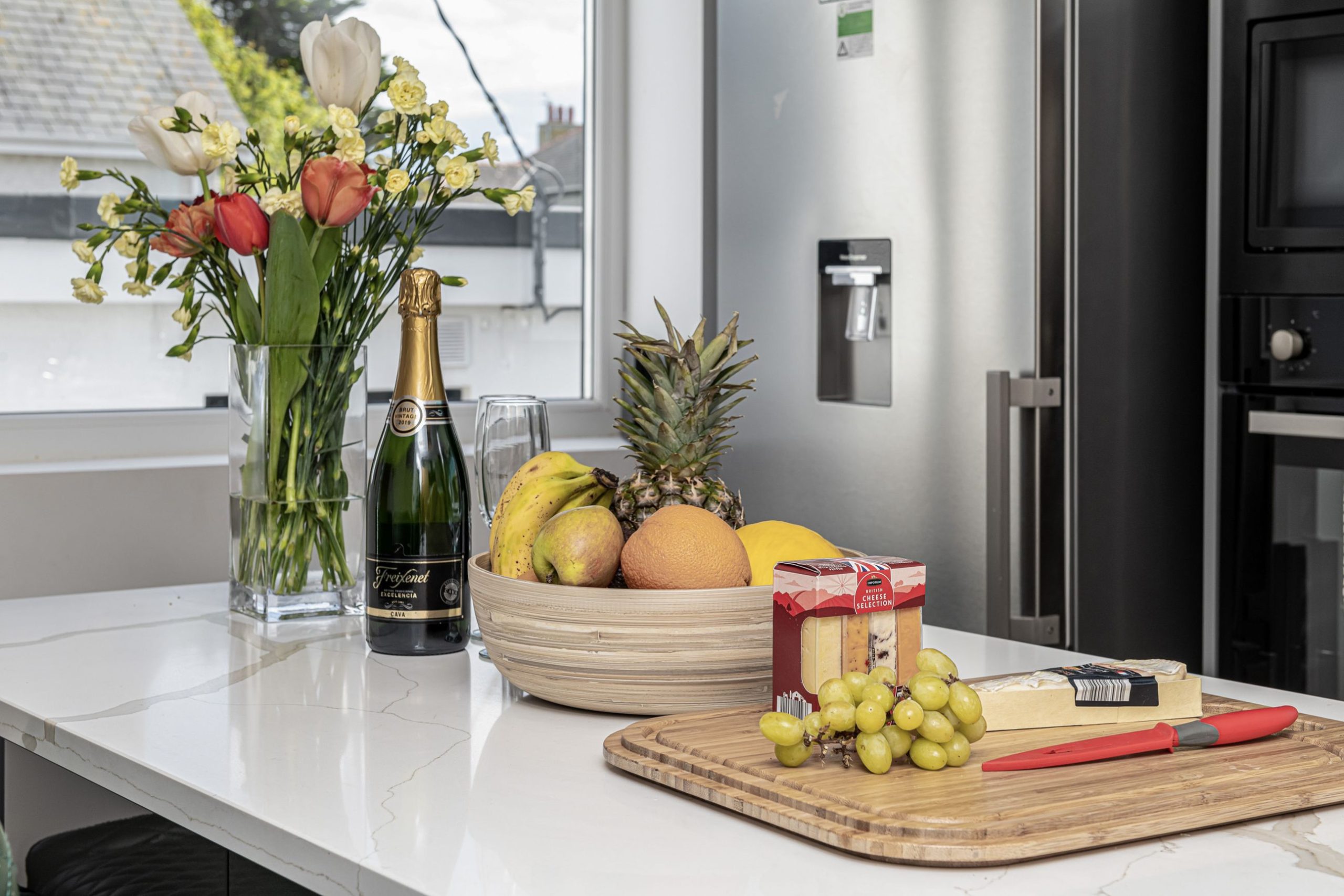Appliances include a coffee machine, food processor, and slow cooker for meals of your like. Dishwasher and tablets are provided so you don’t need to wash up. We have large granite island with plenty of dining area space for family gathering around the kitchen with a glass of wine whilst waiting for dinner.
