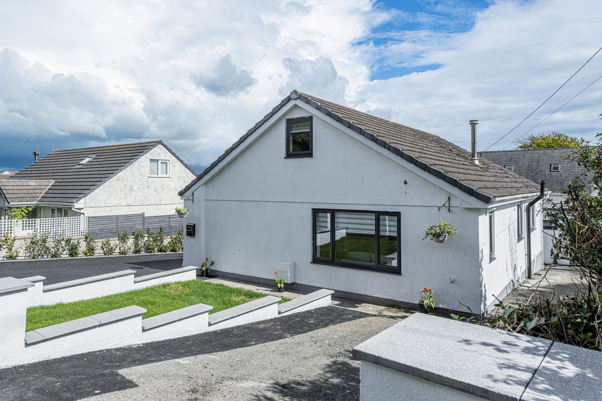 To the front there is a lawned garden and parking for 4 to 5 cars on the drive. We also provide an electric car charging point.