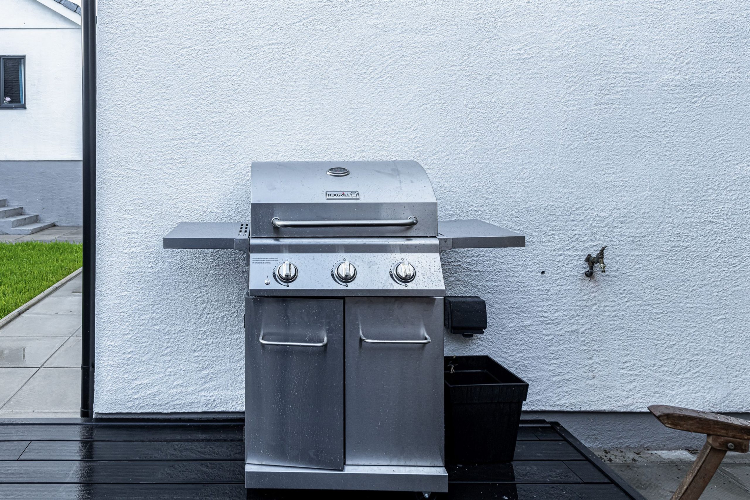 A large outdoor rattan table and 6 chairs set on the decking is perfect for al fresco dining or an evening drink. A gas BBQ and gas pizza oven are available to ensure you make the most of outdoor living both in summer and in winter.
