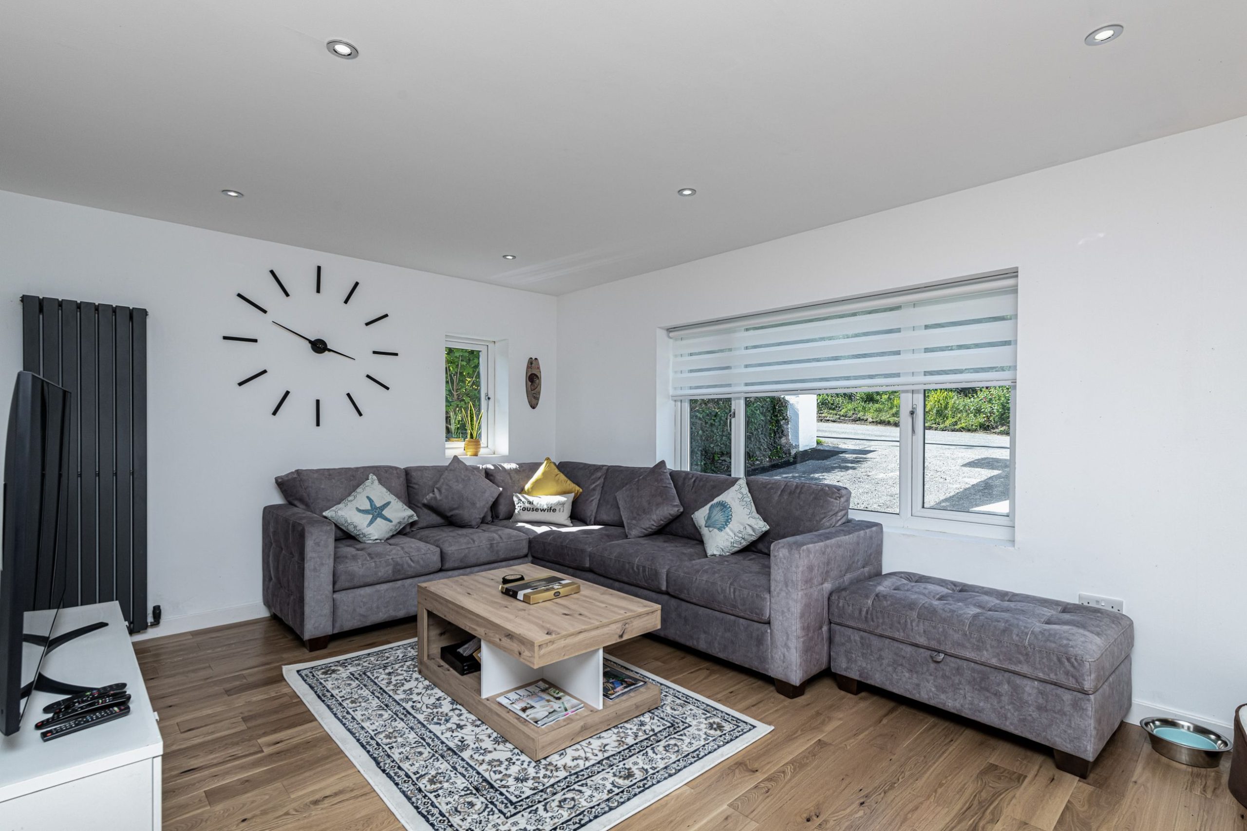 The utility room boasts a drying area, perfect for wetsuits or outdoor clothing. There is also a washing machine. Utility rooms leads out to back gardens and the Games room.