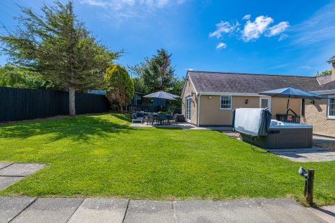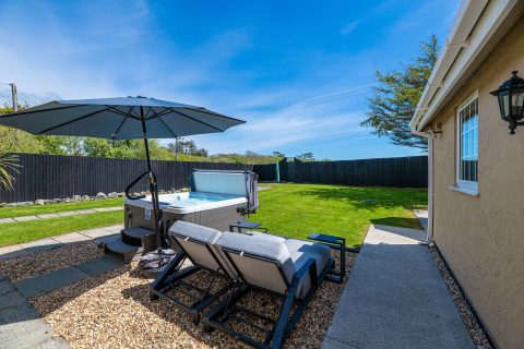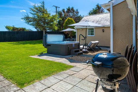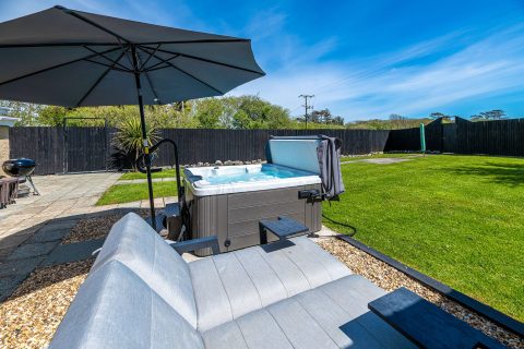 Opposite the lounge is the rear entrance to the property which takes you to the large enclosed gated rear garden. If your arrival date is between 1st April and 23rd September, a patio table with eight chairs, 2 sun loungers, a corner sofa and a Weber charcoal BBQ will be available for your use. The hot tub is also situated in this garden and is available for an additional charge.