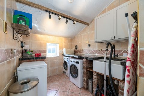 Opposite the kitchen is the utility room with a washing machine and tumble drier, a Belfast sink with cold water supply, an iron and ironing board, a vacuum cleaner, brush, and mop. There are also picnic items and beach towels for guests to use (please bring washing detergent to wash the beach towels if you use them).