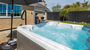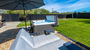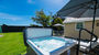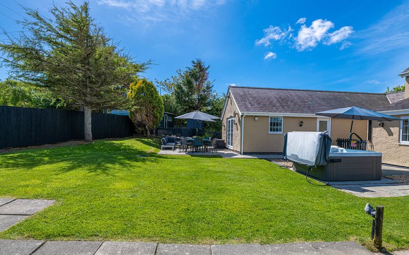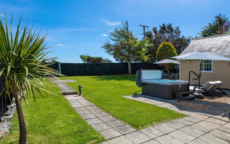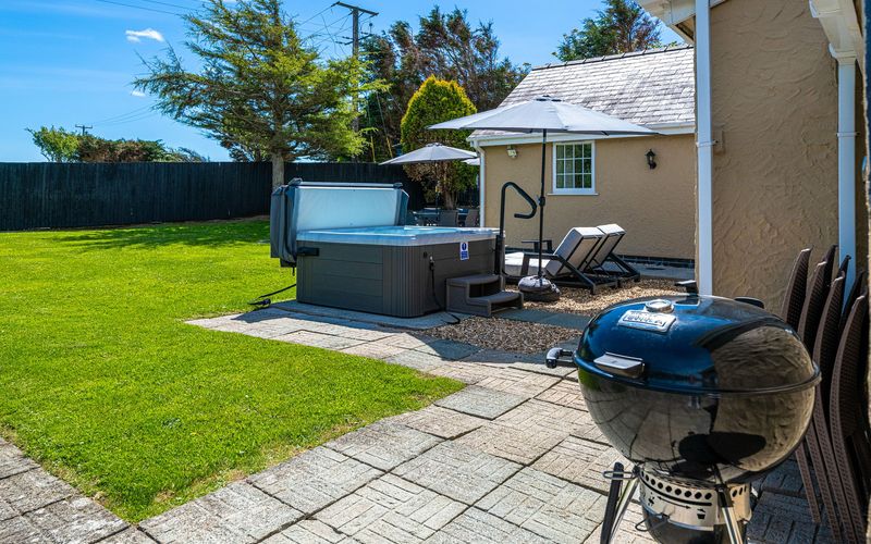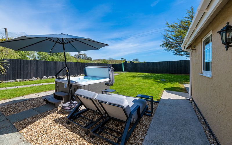 Opposite the lounge is the rear entrance to the property which takes you to the large enclosed gated rear garden. If your arrival date is between 1st April and 23rd September, a patio table with eight chairs, 2 sun loungers, a corner sofa and a Weber charcoal BBQ will be available for your use. The hot tub is also situated in this garden and is available for an additional charge.