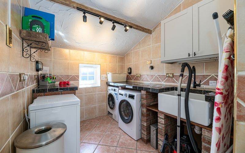 Opposite the kitchen is the utility room with a washing machine and tumble drier, a Belfast sink with cold water supply, an iron and ironing board, a vacuum cleaner, brush, and mop. There are also picnic items and beach towels for guests to use (please bring washing detergent to wash the beach towels if you use them).
