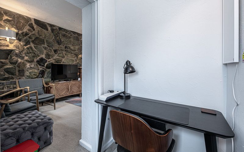 In the alcove (in the lounge) is a dedicated work space containing a desk, work chair, desk lamp and infrared wall panel heater.