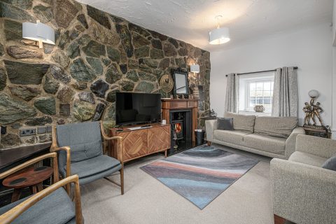 Next to the kitchen is the cosy lounge, with stone wall detail. This room is part of the original stone cottage built circa 1850. There is an Aga multifuel stove fitted and, if your arrival date is between 1st October and 24th March, a starter pack of smokeless coal and kindling will be left for you.