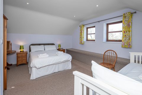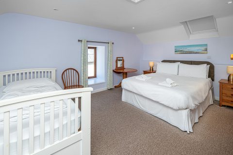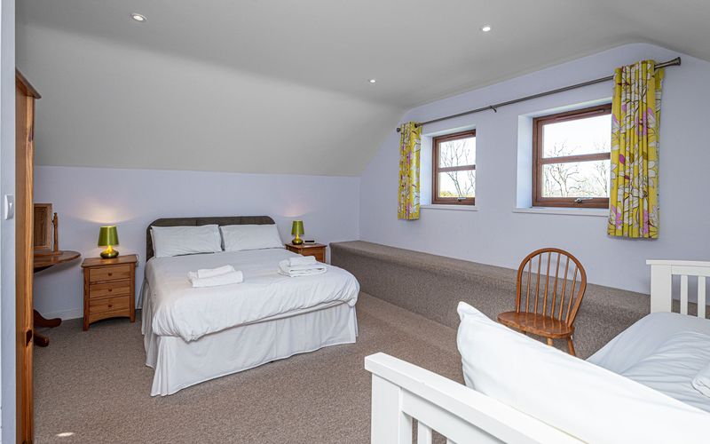 - Bedroom 3: King-size bed and day bed (converts to 2 singles), en suite shower (sleeps 3).