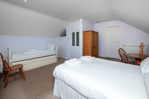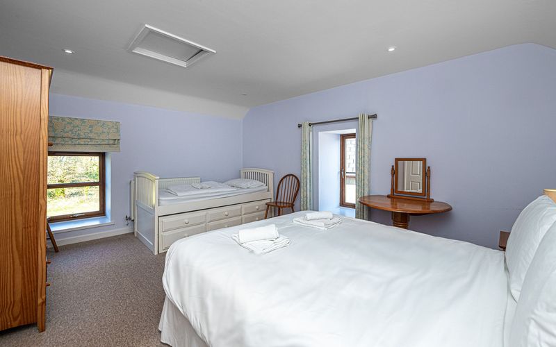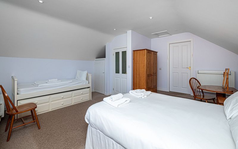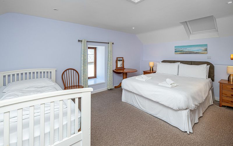 - Bedroom 3: King-size bed and day bed (converts to 1 single), en suite shower (sleeps 3).