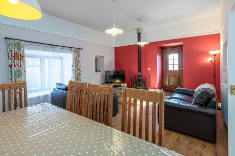 - Lounge/Dining: Open-plan with TV (Freeview), DVD player, hi-fi, and wood burning stove; seats 7.
