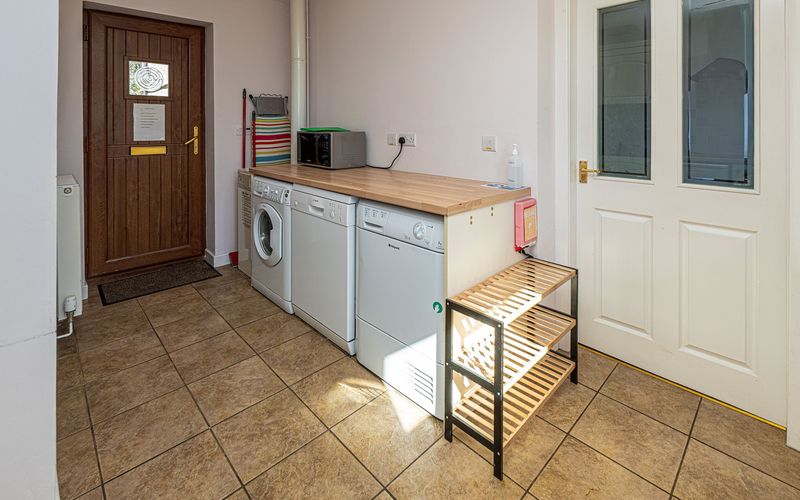 - Kitchen: Modern with fridge, freezer, oven, grill, microwave, and dishwasher; utility room with sink, washing machine, and tumble dryer.