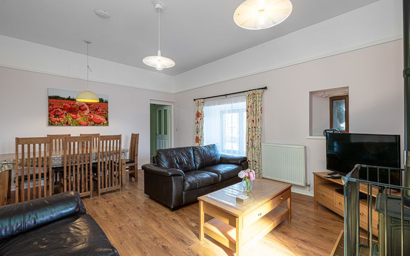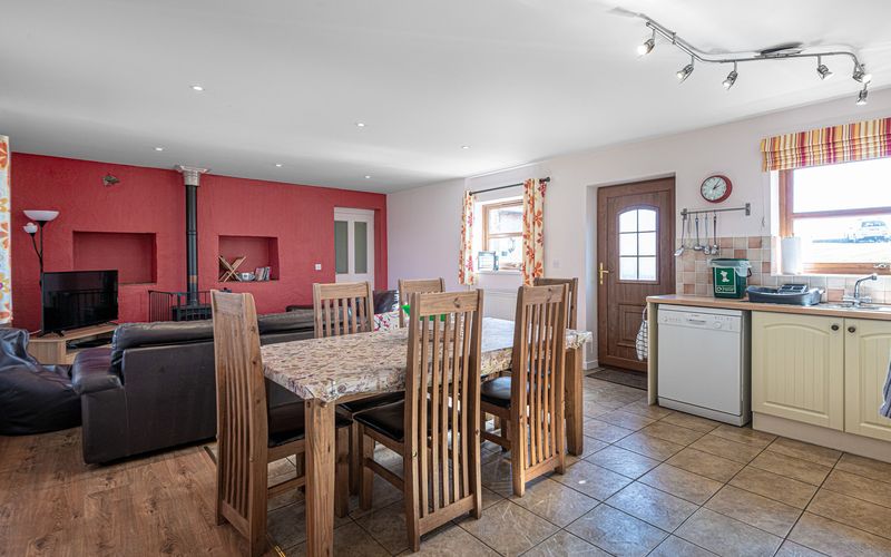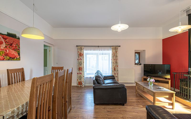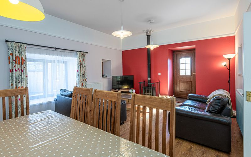 - Lounge/Dining: Spacious with TV (22-inch Freeview), DVD player, hi-fi, and wood burning stove; seats 7.