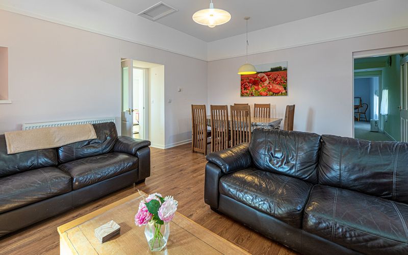 - Bathrooms: Large bathroom with disabled access (bath, WC), en suite shower in Bedroom 2, en suite shower in Bedroom 3, plus a cloakroom with WC.