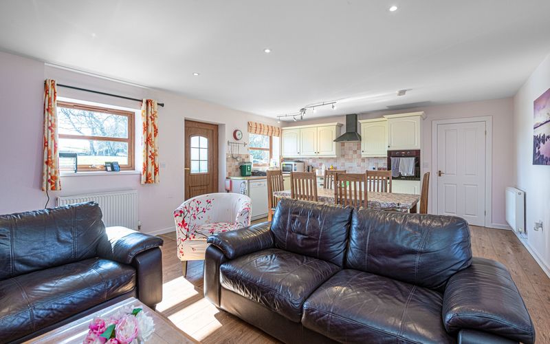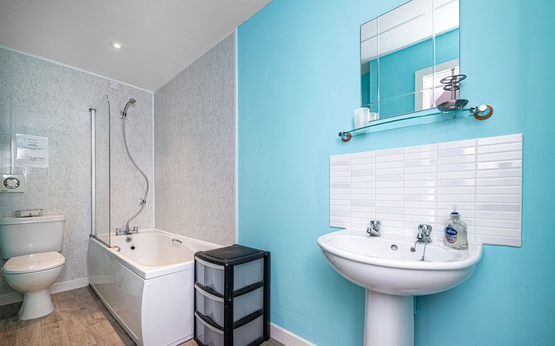 - Bathrooms: Large bathroom with wheelchair access (bath, WC), en suite shower in Bedroom 1, en suite shower in Bedroom 3, plus a shower and WC in utility room.