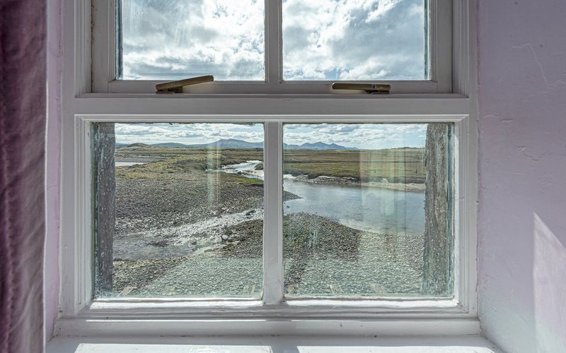 Dock Cottage, the old stone cottage, which is adjacent to other buildings, faces towards the harbour where boats are moored in the summer. The back of the cottage overlooks a tidal bay and at very high tides the water laps the cottage. The views are unusual and quite spectacular and it is a birdwatcher’s paradise!