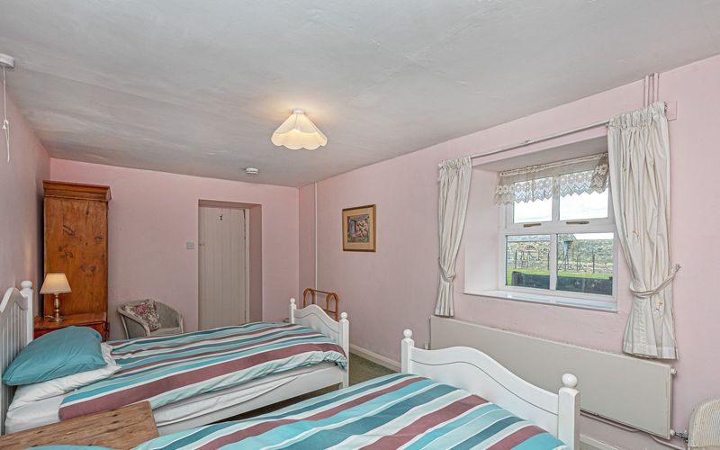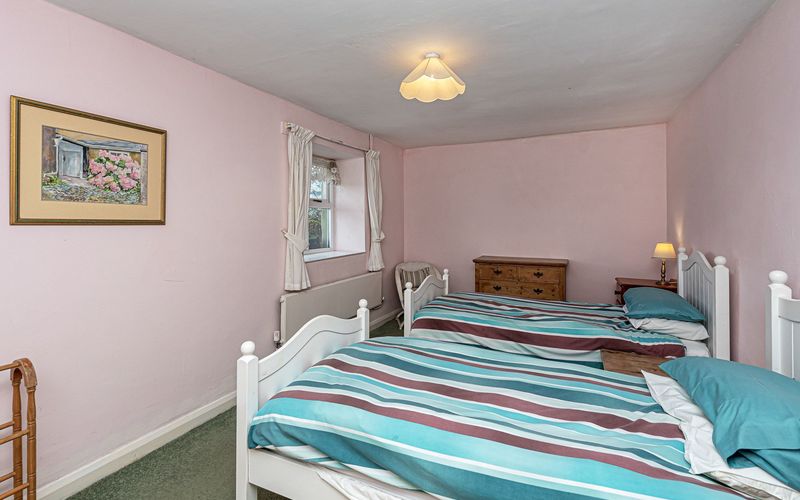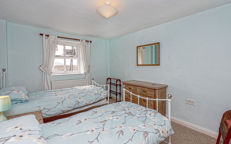 The cottage has three bedrooms sleeping six in all. There are two twin-bedded rooms, one at the front and one at the rear of the house. One is accessed from the sitting room and the other from the end of the entrance hall and is next to the bathroom. The third is a double-bedded room facing south with access from the sitting room.
