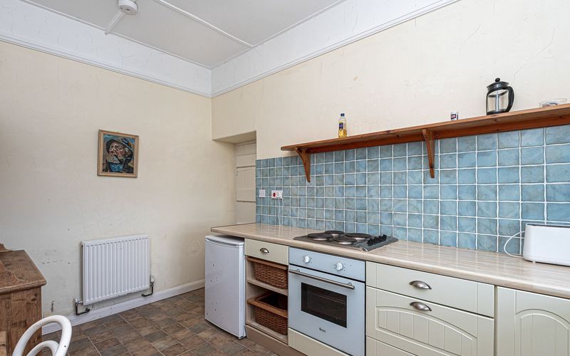 Next to the kitchen is a utility room which houses the boiler, washing machine, freezer and vacuum cleaner.