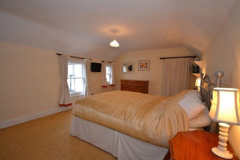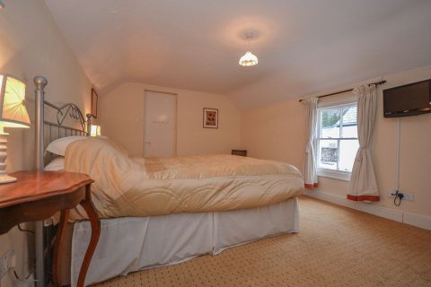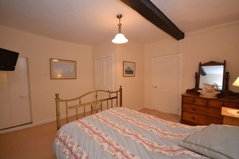 The first bedroom is located at the rear of the property, accessed via the stairs in the sitting area/snug. The bedroom has a double bed, 22in Flatscreen television with ‘built-in’ Freeview and DVD player. There is a walk-in wardrobe.