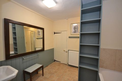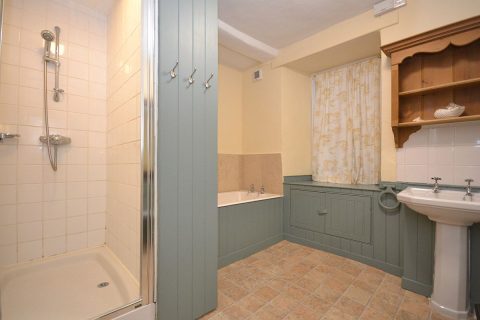 The first floor bathroom has a bath, a separate walk-in shower and hand basin.