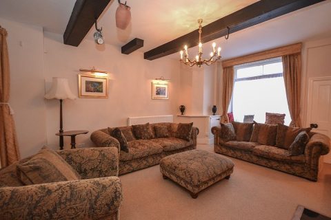 This is spacious and comfortable room has beams and a chandelier in the ceiling, an attractive fire surround and a choice of sofas (a 3-seater sofa and a 4-seater sofa) and an armchair. There is a 28in Flatscreen TV and DVD player, CD player and radio with games in the drawer under the TV.