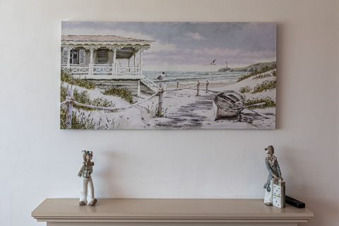 The utility room has a washing machine, toilet and plenty of room to store your wet clothes after a day at the beach.