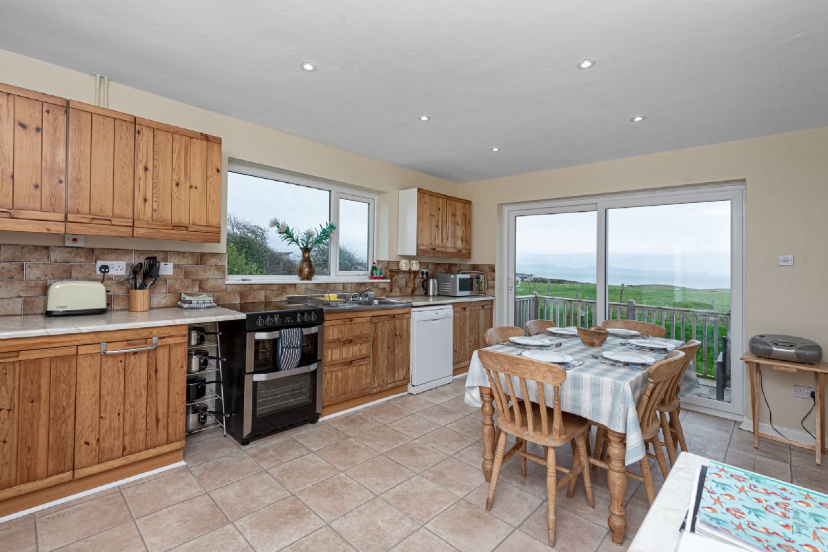 - Kitchen: Fully fitted and flooded with natural light, the kitchen opens onto a sea-facing patio through French windows. Modern appliances—including a double oven cooker with an induction hob, fridge/freezer, and dishwasher—make meal prep a breeze. There’s even a separate utility room with a washing machine and dryer.