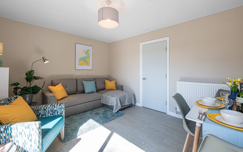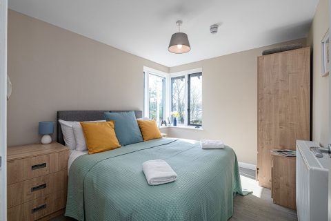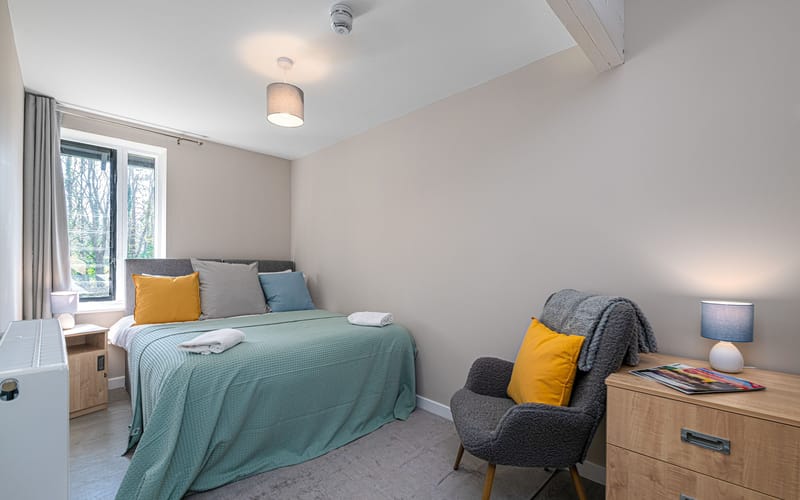Outdoor Space: Small patio area, shared garden with picnic tables, and access to Plas Menai’s outdoor spaces and mountain bike track