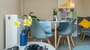 Kitchen: Fully equipped with under-counter fridge, cooker, washing machine, and microwave