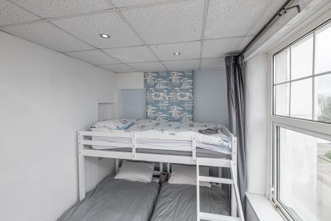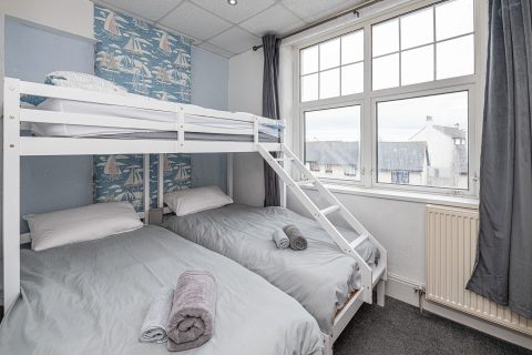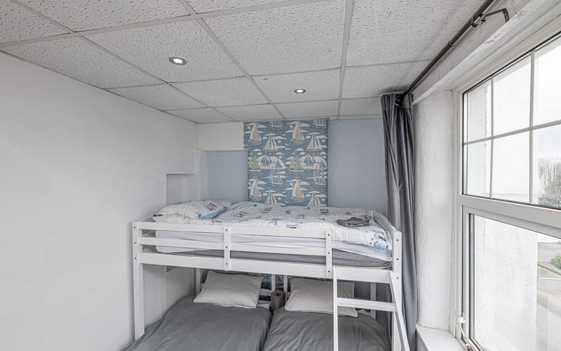 One triple bunk beds at the front bedroom sleeps 3 with sea view.