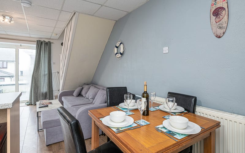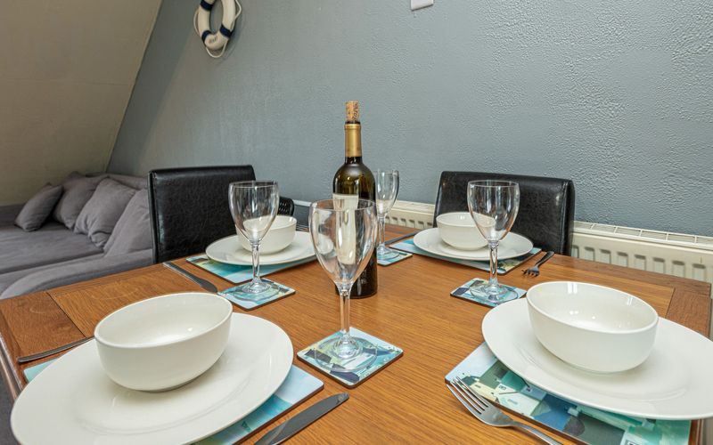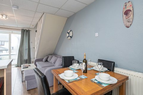 Seabird @ 6 Trearddur House Mews a cozy quaint 2 bedroom 1 bathroom mews cottage just off the main Trearddur Bay Road a stones throw to the beach restaurants eateries shops of the fabulous blue bay Trearddur Bay beach! One double bedroom sleeps 2, one triple bunk at the front bedroom sleeps 3 with sea view! Lounge dining open plan kitchen downstairs with 2 terraces one at the front and back and garden.
