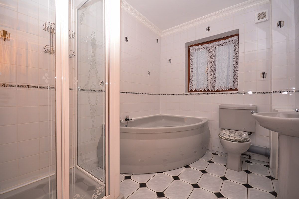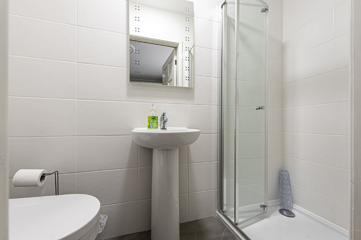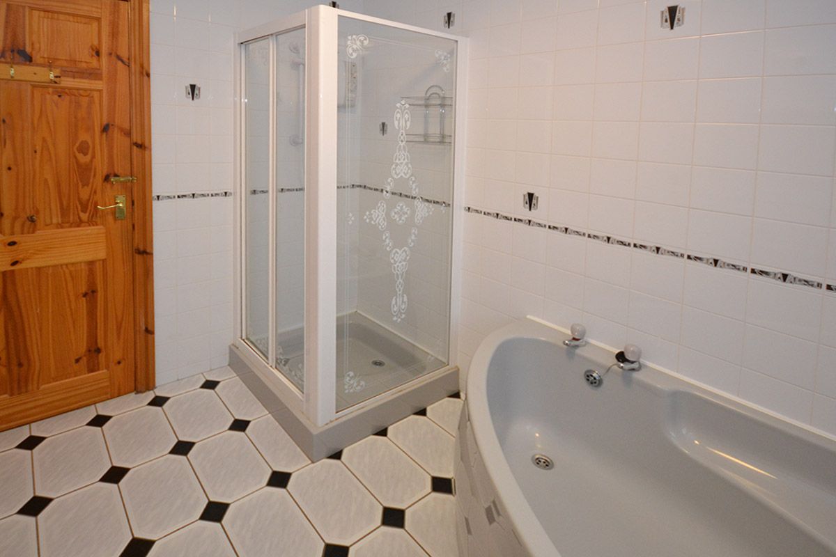 The well equipped and spacious kitchen contains an electric cooker with 4 gas hobs, fridge, microwave, dishwasher and a toaster. There are also 6 wooden breakfast bar stools for dining in the morning.
