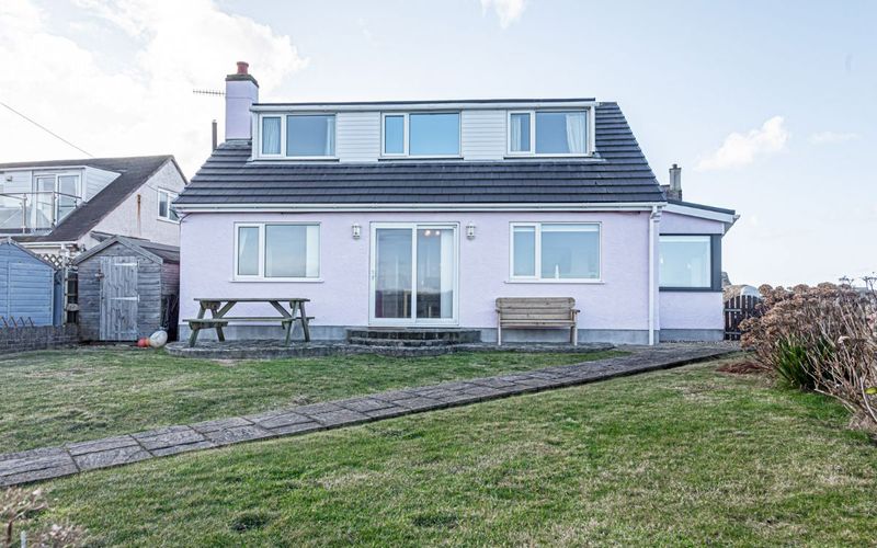 Outside the back garden is ideal for children to play. There is a low wall to not block any of the views, so although enclosed, it is not completely dog proof. The garden area benefits from magnificent sea views, a bench, and a wooden picnic table for outdoor eating. It is a perfect summers evening setting. There is ample parking for two vehicles at the front of the property.
