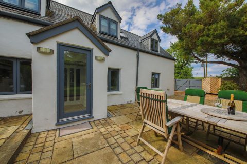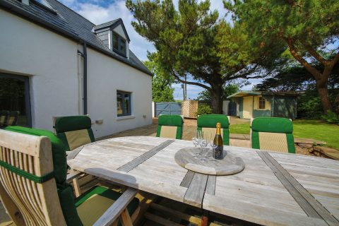 The house sits within a large and fully enclosed wrap around garden and raised terrace with sea views. There is an outside sink and hose for washing off after beach days before finishing the day sitting outside taking in the tranquillity of the surroundings.