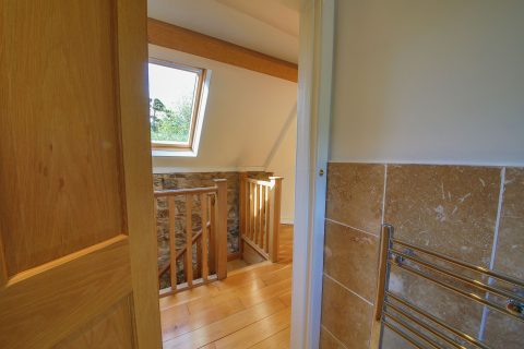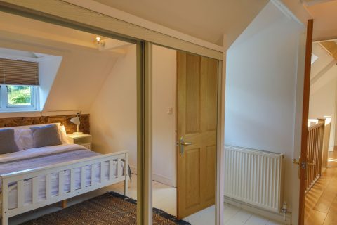 A unique wooden staircase leads to three bedrooms all with built in wardrobes.
