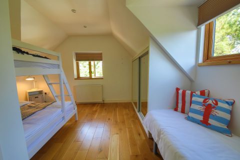 Bedroom two has a bunk bed arranged as a double with single over and junior bed. An en-suite shower room makes this room ideal for a young family or children.