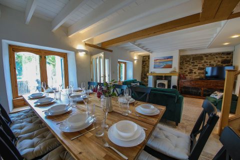 The large lounge/dining room has two separate sitting areas idea for families and a dining table seating 10. There is a wood burning stove for winter breaks and a door leading to the garden. The large smart TV allows you to log into Netflix, Prime, Disney, YouTube etc. Guests can also take games consoles to plug into the TV should they wish. The TV in the snug has sky TV essentials package which gives viewing for standard channels.