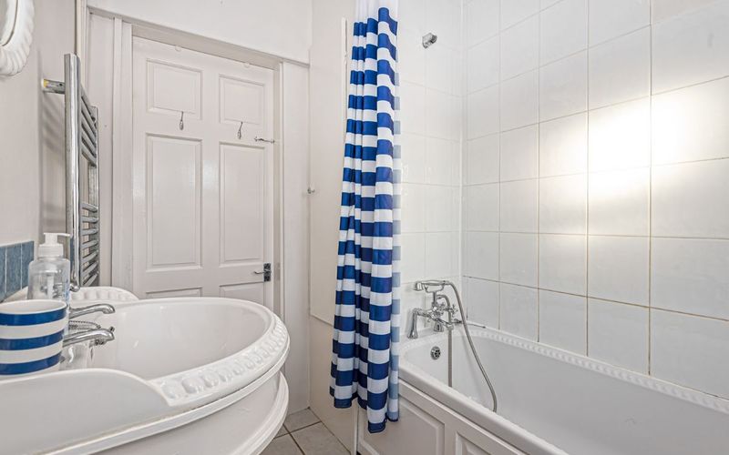 The property has the benefit of a very large garden overlooking the bay which is shared with the upstairs apartment.