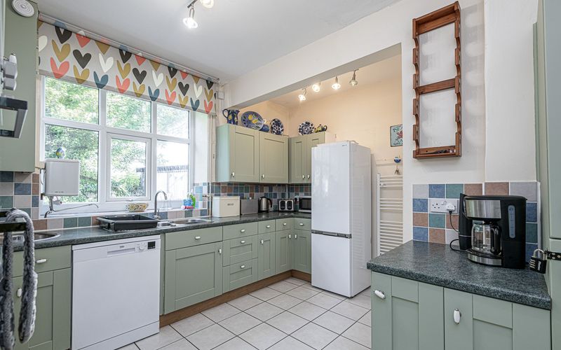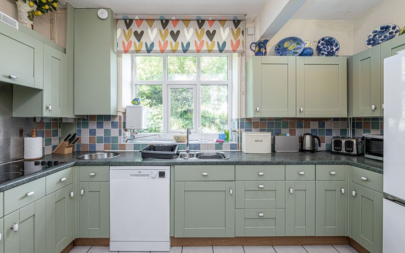 The kitchen is well equipped with a cooker, dishwasher, fridge, freezer, kettle, coffee machine, toaster, microwave, washing machine and tumble dryer. Most appliances are recently updated although the kitchen itself is dated, but very functional