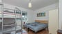 Second bedroom with triple bunk (double below, single above)