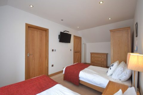 The twin bedroom has two single beds, a chest of drawers set, a large wardrobe and 32in TV with a Free View box.