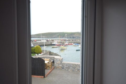 This airy bedroom contains a King size bed, a bedside cabinet, a large wardrobe and a chest of drawers set. The Juliet balcony offers great views over the Cemaes Bay.