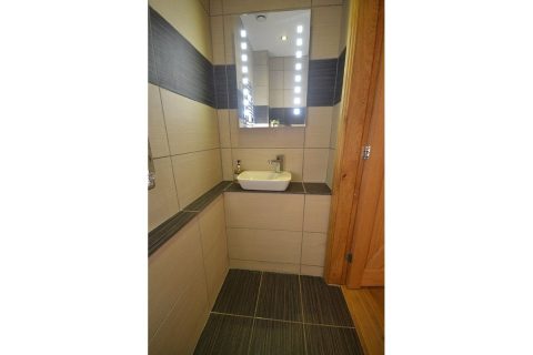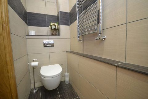 The downstairs bathroom contains a washbasin, toilet and a heated towel rail.