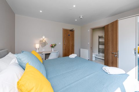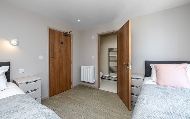 Double bedroom with a zip and link double bed that can be made up as a twin room if requested. En-suite shower room and toilet.