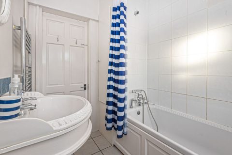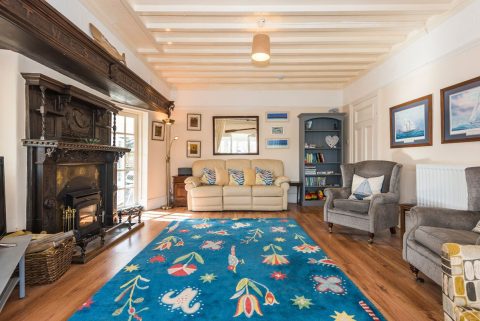A spacious ground-floor apartment, originally part of a Sea Captain’s house, featuring a wrap-around sunroom, large shared garden, and direct access to the beach.