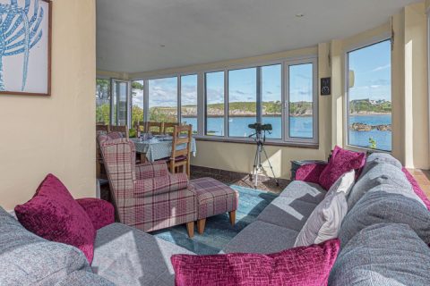 A beautifully positioned home boasting mesmerising sea views from the kitchen, lounge, bedroom, and fabulous glass balcony.